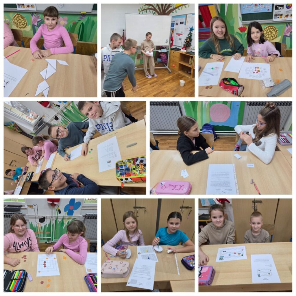 U četvrtak, 4. prosinca 2025. u organizaciji Hrvatskog matematičkog društva i uz potporu Ministarstva znanosti i obrazovanja u našoj školi tradicionalno je održana Večer matematike 2025. Riječ je o nizu interaktivnih radionica koje potiču izgradnju pozitivnog stava učenika prema matematici. Sudjelovanje u zabavnim aktivnostima otkriva često zaboravljenu zabav-nu stranu matematike, stvara nove ideje o tome što matematika jest i čime se bavi. Na Večeri matematike sudionici obilaze „matematičke stanice“ i odabiru aktivnosti u kojima će sudjelovati. Materijali s detaljnim uputama o aktivnostima dostupni su na svakom centru, a pri njihovoj provedbi pomažu učitelji i voditelji radnih centara. Čari matematike otkrivalo je jedanaest učenika/ca 1. a, sedam učenika/ca 2.a i trinaest učenika/ca 4. a zajedno sa svojim učiteljicama Majom Gadanec, Silvijom Perić i Andreom Dadić te pomoćnicom u nastavi Ma-rinom Tarnaj. Atmosfera je bila izvrsna, a fotografije govore više od riječi.